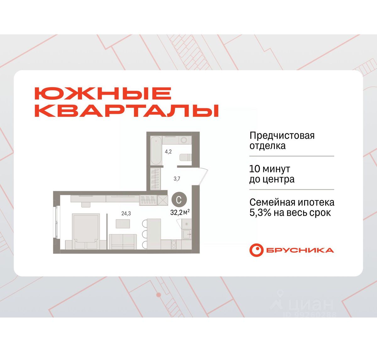 Студия в Южных кварталах. Особенности планировки: предчистовая отделка. квартиры в нашей базе: ЮКВ08-Ж1.5.4.