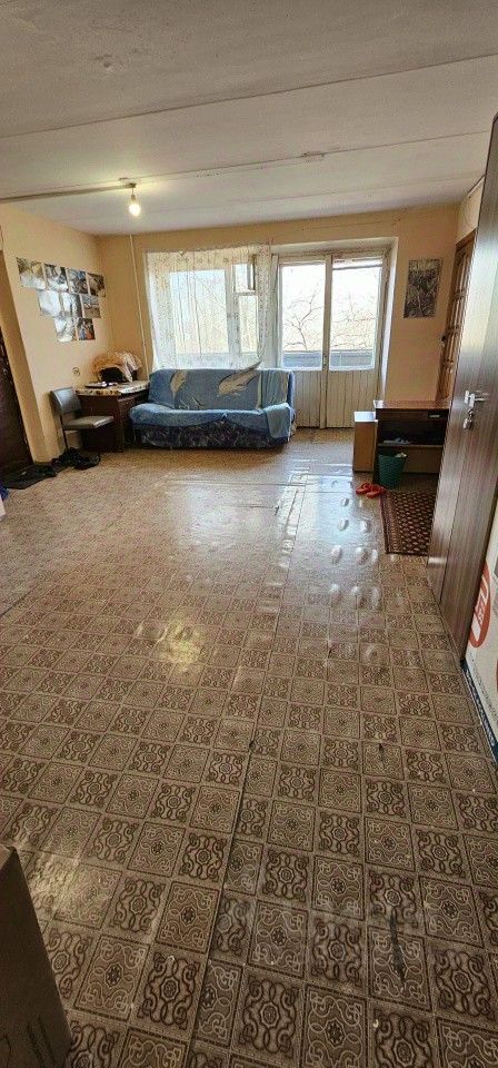 Комната чистая, светлая. Окно пластиковое, сейф дверь. Оставим большой шкаф-купе с зеркалом, стол, тумбу.