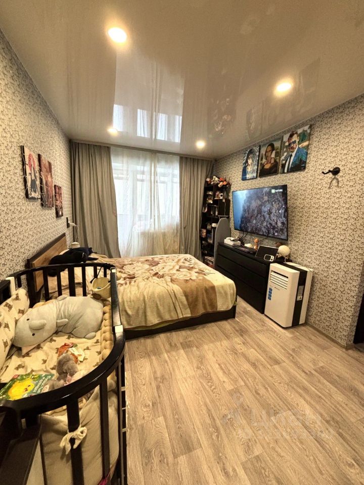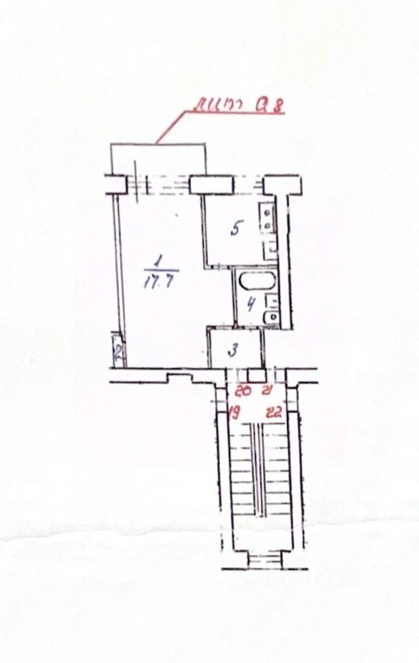 А так же, в комнате выделена низша под шкаф. Имеется застекленный балкон, окна выходят во двор.