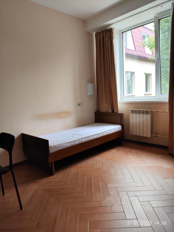 Предпочтение молодым спокойным мужчинам и женщинам, или молодым парам без финансовых проблем и только на длительный срок (не менее чем до августа 2026 года) чистую комнату 13 кв.м в двухкомнатной секции. В соседней комнате проживает порядочный молодой человек (мед.работник). На две комнаты: общие душевая кабина, умывальник, унитаз. На общей этажной кухне установлены электрическая плита, стиральная машина и холодильники. Состояние хорошее, пластиковые стеклопакеты, кафельный пол.