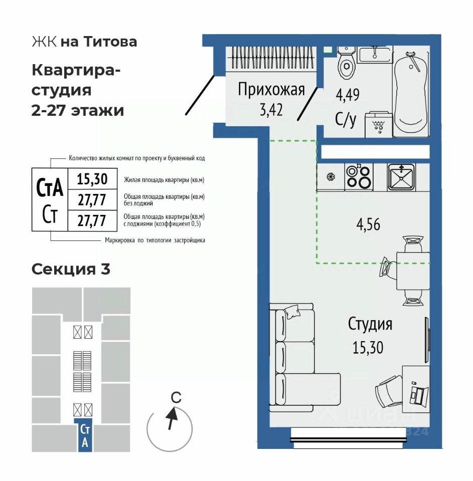продам 1-к, Титова, 19.1 стр.4 878 400 ₽
