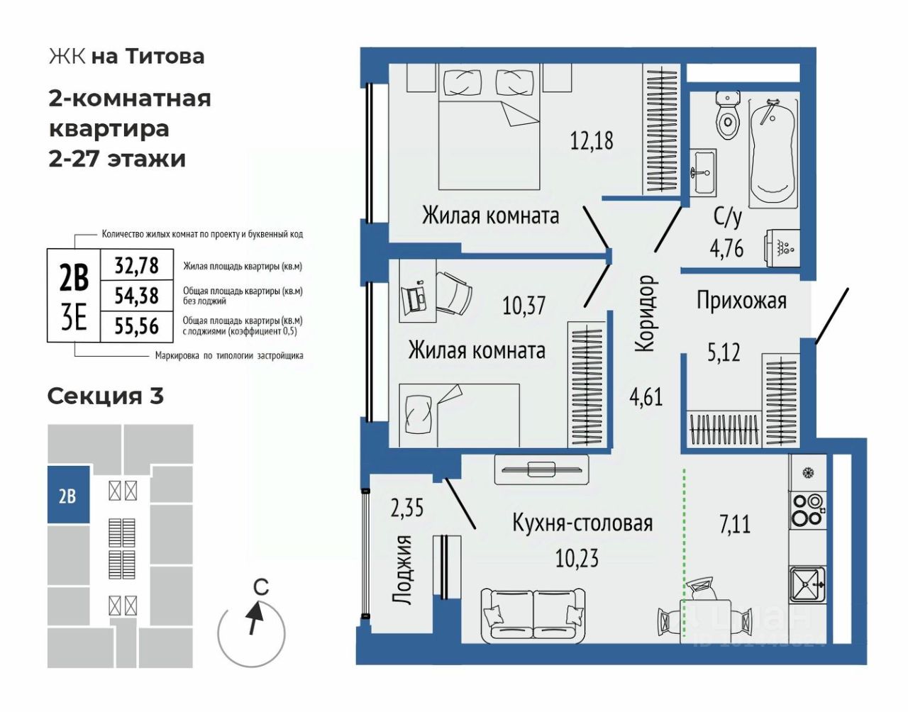 продам 3-к, Титова, 19.1 стр.8 894 709 ₽