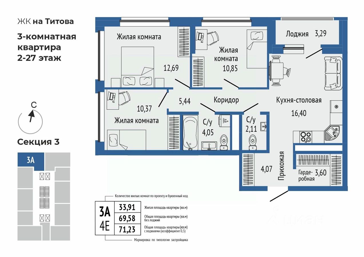 продам 3-к, Титова, 19.1 стр.10 999 513 ₽