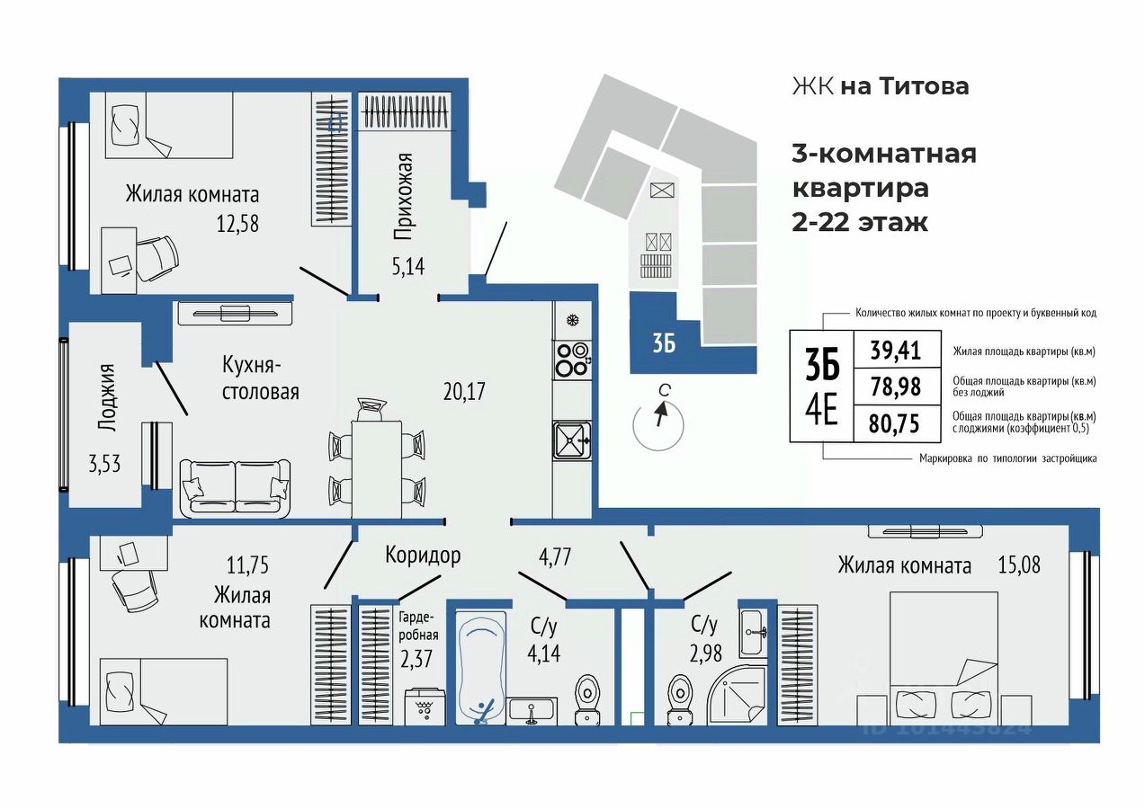 продам 3-к, Титова, 19.1 стр.11 570 124 ₽