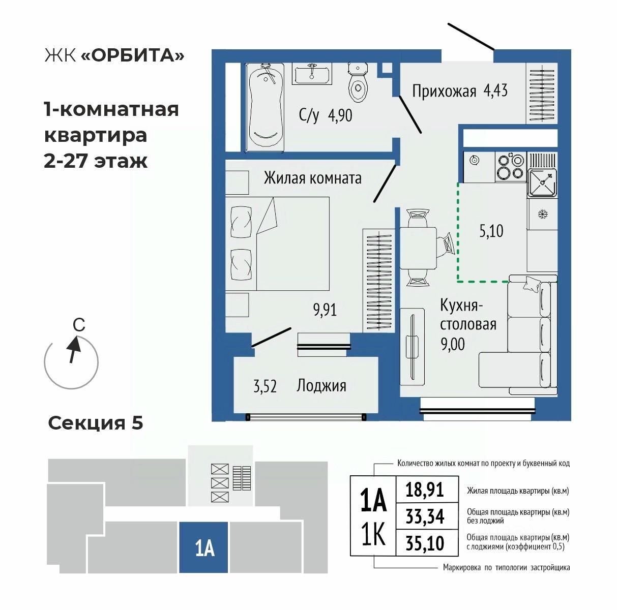 продам 2-к, Титова, 19.2 стр.5 510 700 ₽