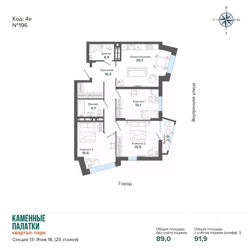 Преимущества дома: • Просторная закрытая придомовая территория, • Прямо из комплекса выход в природный парк Каменные Палатки, • Просторная наземная парковка и подземный паркинг, • Муниципальный детский сад в 3й очереди на 200 мест, • В жилом комплексе расположены ЖизньМарт, Монетка, Пятёрочка, пункты выдачи ЯндексМаркет, Ozon и Wildberries. Детский оздоровительный центр и стоматологическая клиника. • В нескольких минутах от дома расположены: гимназия 45, пять детских садов, гипермаркет ''Магнит Семейный''.