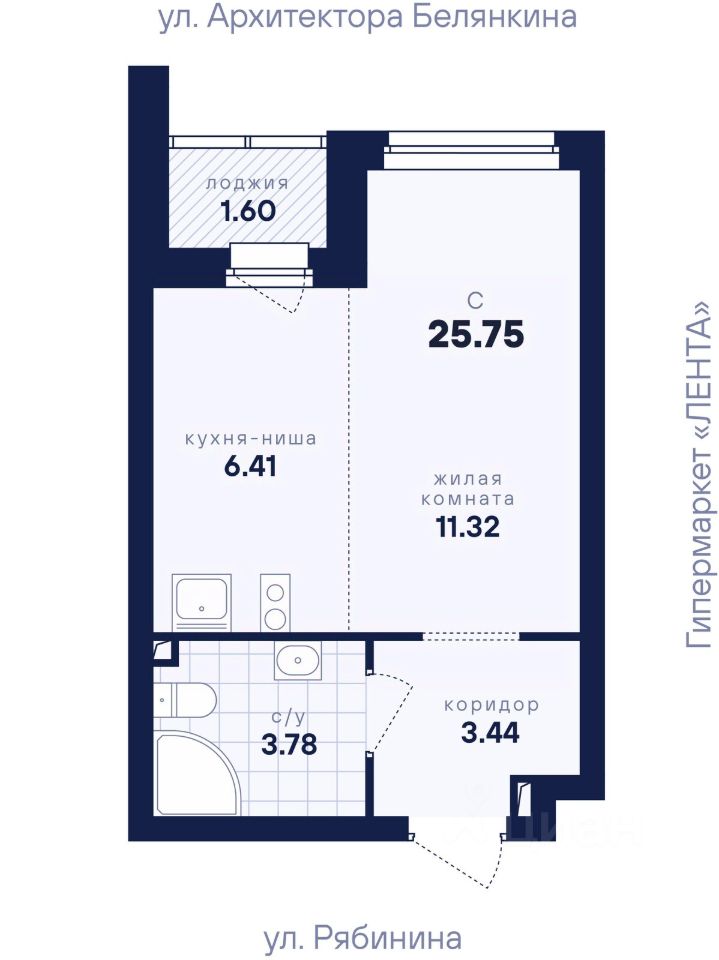 Общая площадь25,75 м2