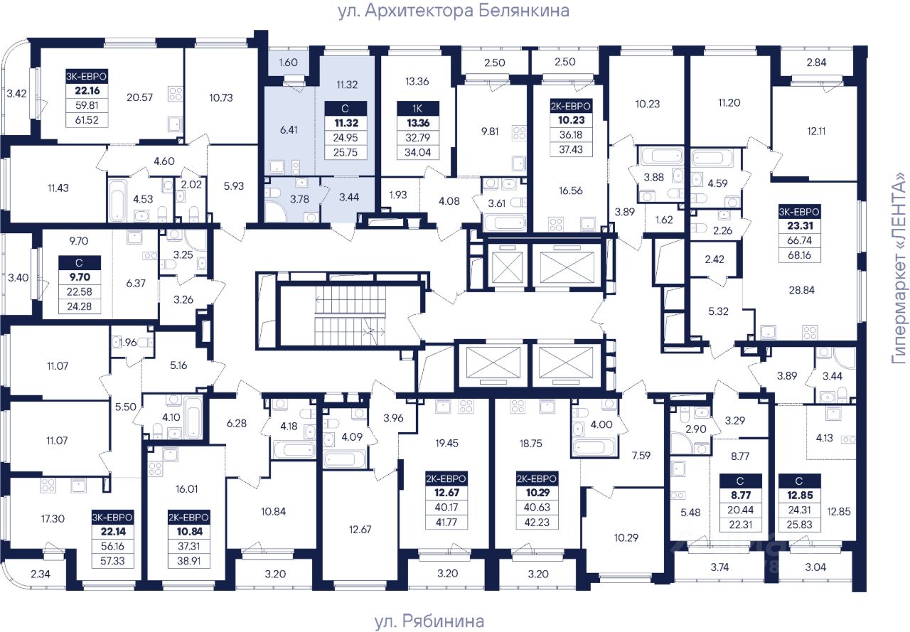 26 этажей Секция 1.2 — 2 подъезда