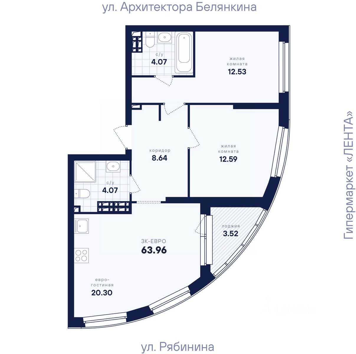 Общая площадь63,96 м2