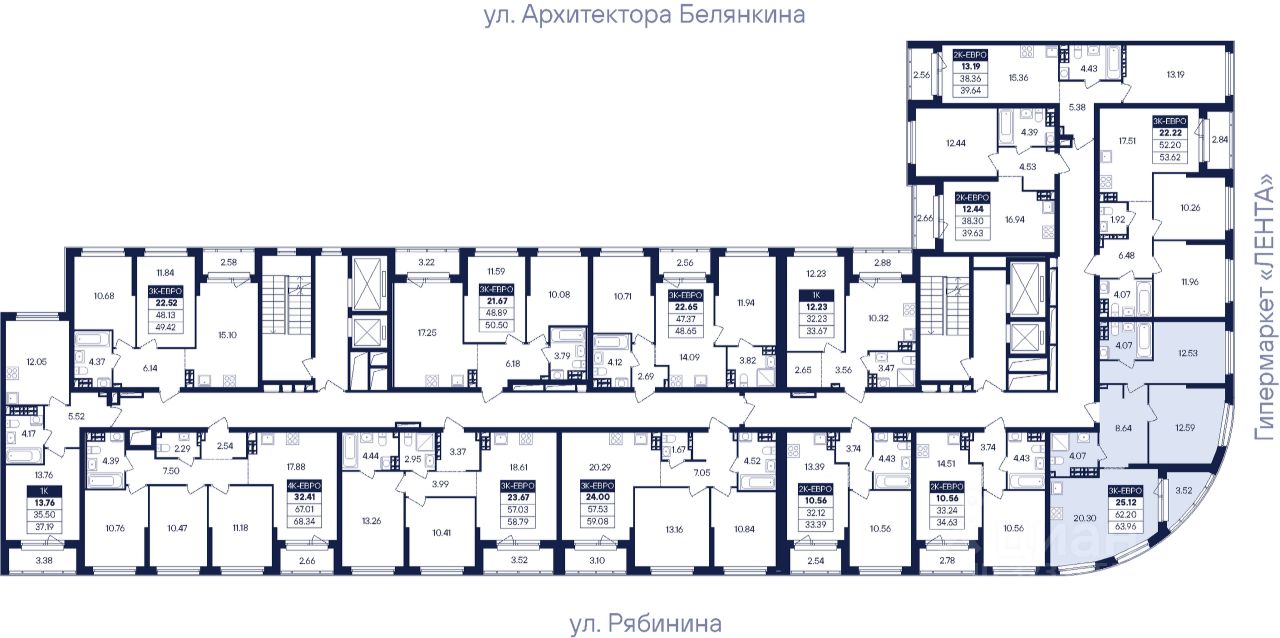 26 этажей Секция 1.2 — 2 подъезда