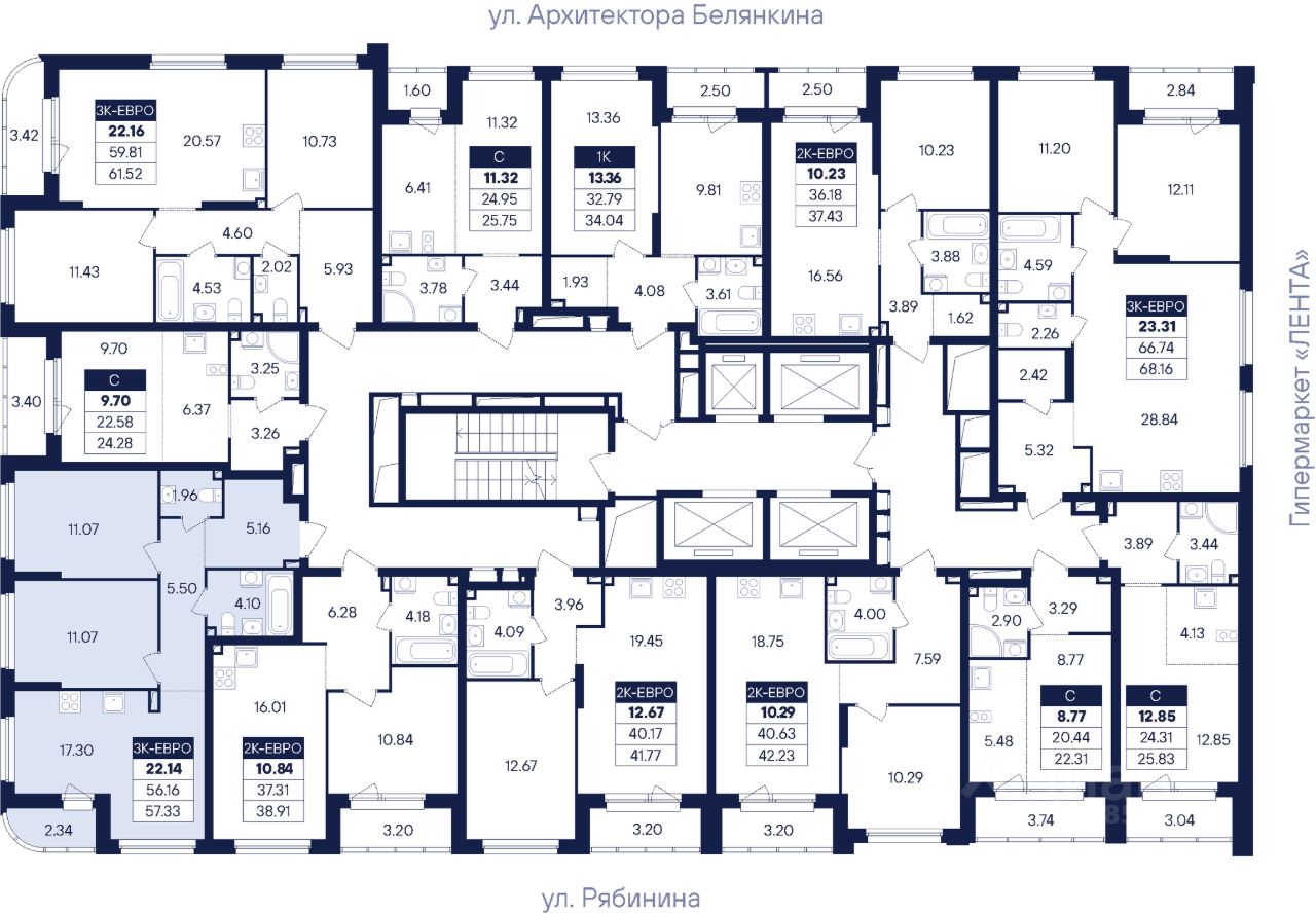26 этажей Секция 1.2 — 2 подъезда