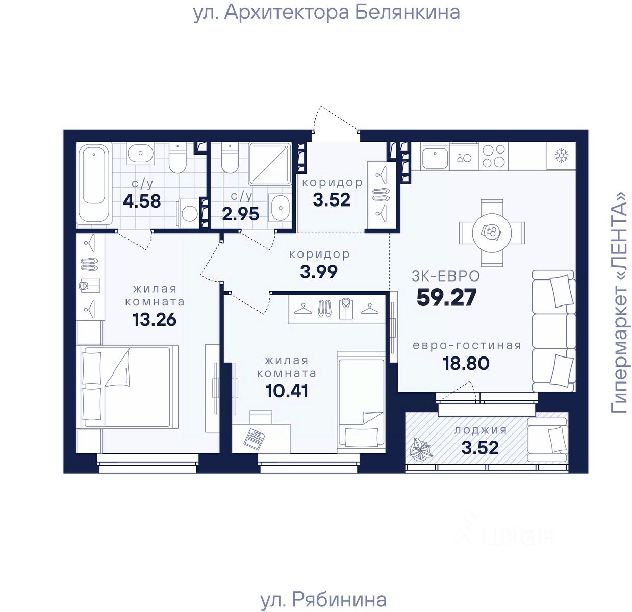 Общая площадь59,27 м2