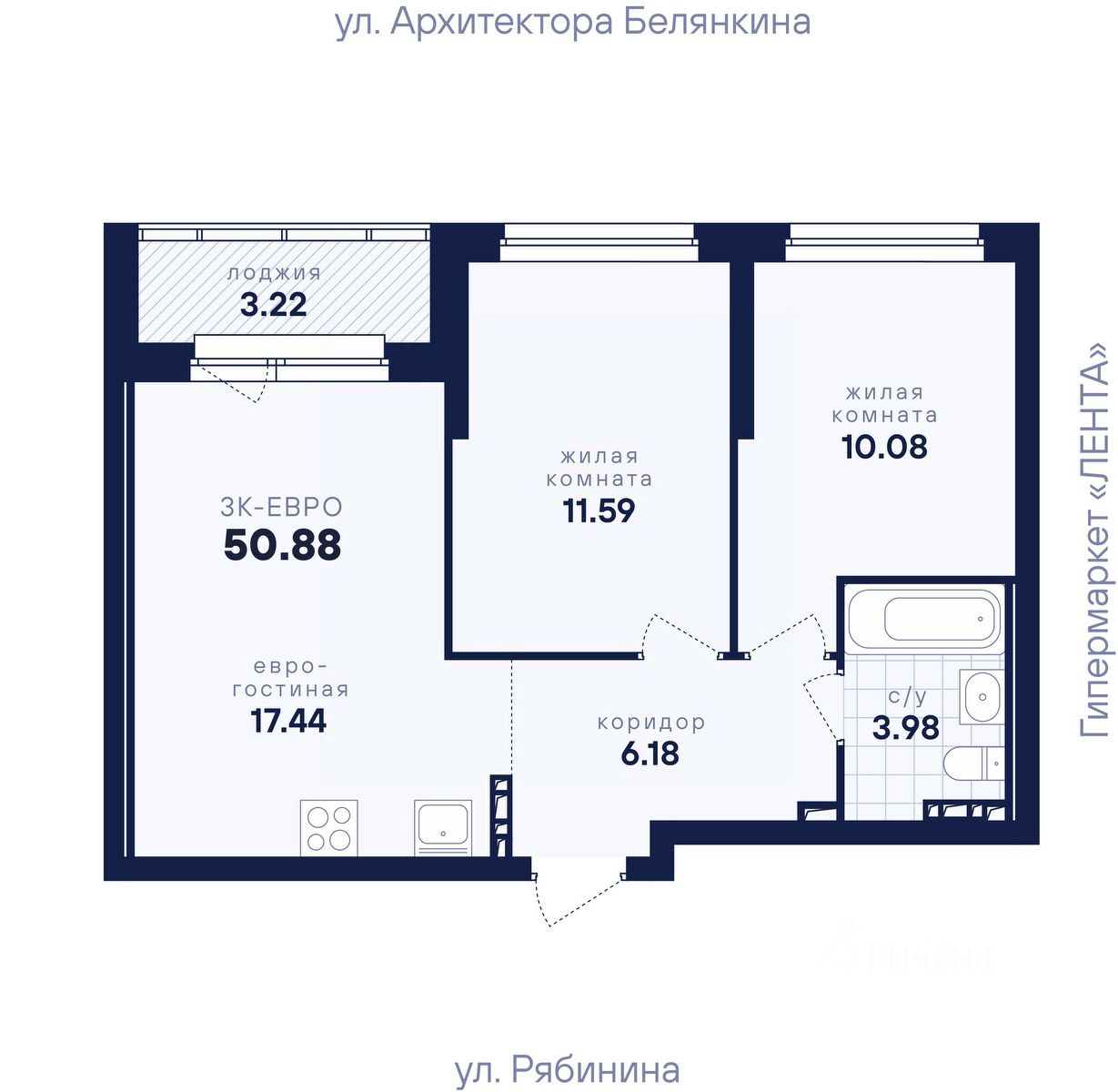 Общая площадь50,88 м2