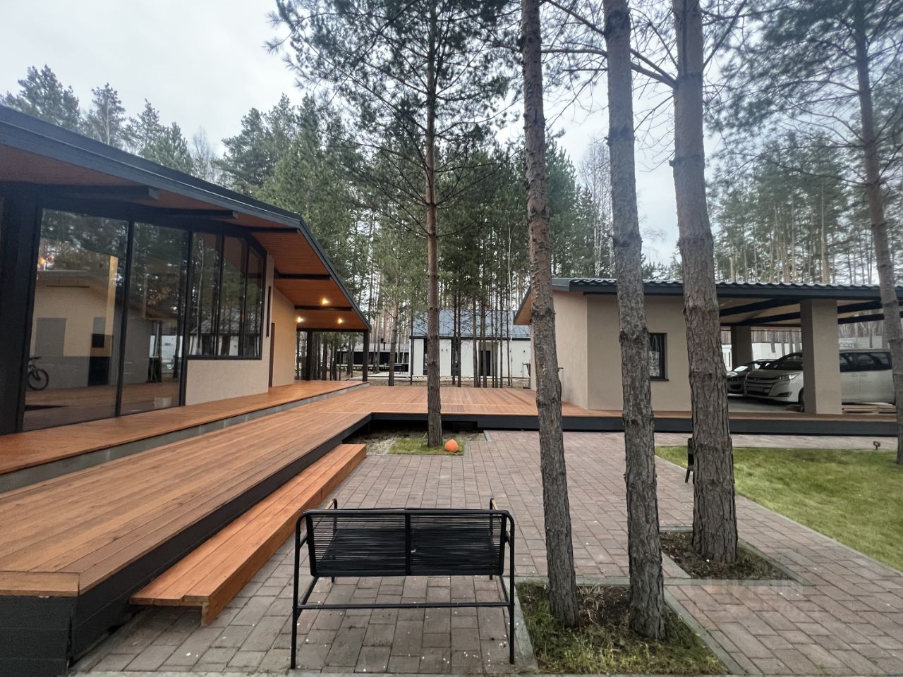 174 м² продуманного пространства: * Гостиная с панорамным остеклением - природа станет частью вашего интерьера * Дизайнерский камин - создает атмосферу уюта и романтики * Мастер-спальня с личным выходом на террасу - просыпайтесь под пение птиц * Просторные террасы - идеальны для пикников и встреч с друзьями * Отдельная котельная - никаких посторонних звуков в доме, автономное водоснабжение, два котла отопления (основной и резервный)