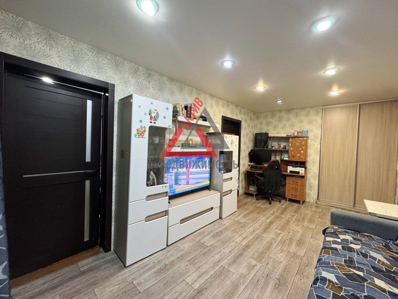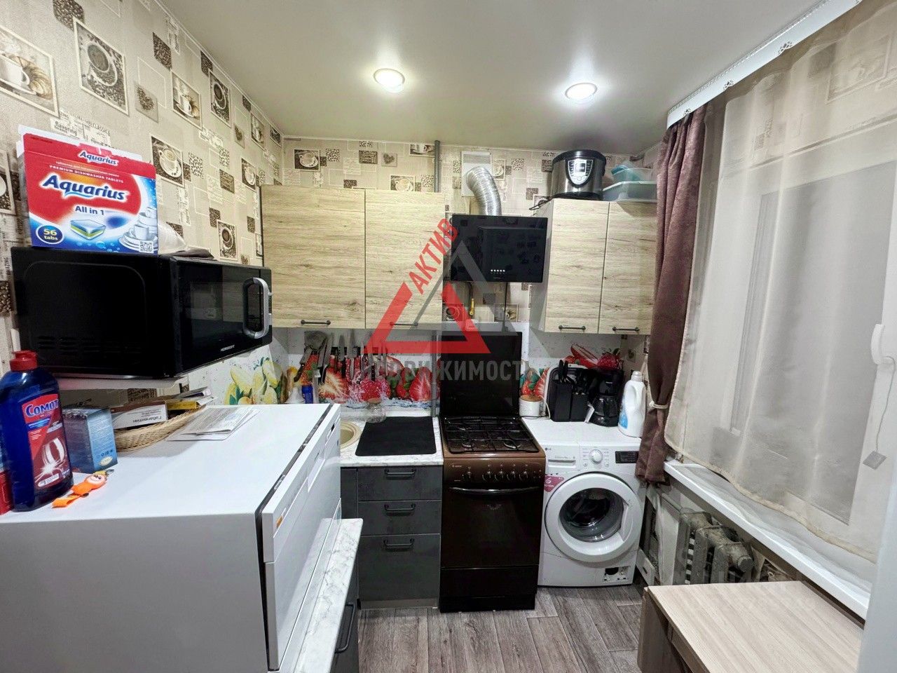 Оставим кухонные шкафчики, встроенный шкаф в комнате.
