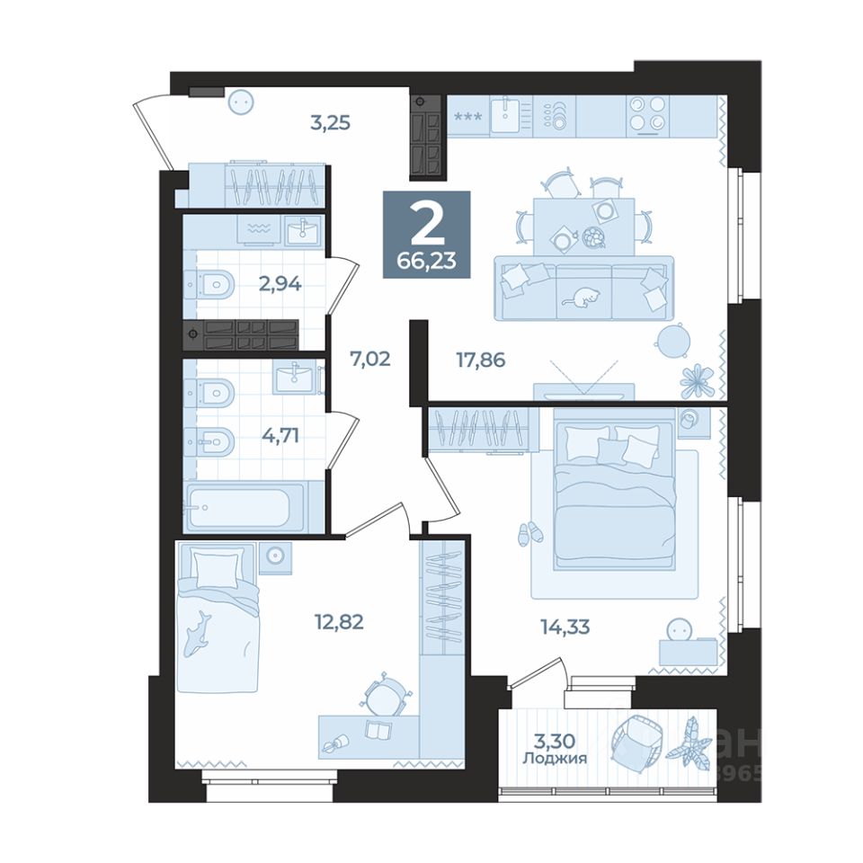 Общая площадь66,23 м2