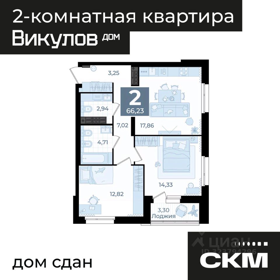 продам 2-к, Викулова, 41б стр.13 090 000 ₽