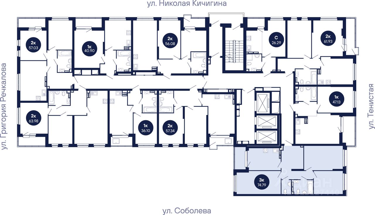 Пластиковые окна с двухкамерными стеклопакетами гарантируют теплосбережение зимой, а приточные клапаны вентиляции — поступление свежего воздуха летом. Установлены надёжная входная и стильные межкомнатные двери. На полу в прихожих, комнатах и кухнях уложен ламинат, а в уборных — керамическая плитка. Стены в санузлах окрашены, а также установлены раковины, смесители и унитазы. Стены комнат, кухонь и коридоров обклеены виниловыми обоями на флизелиновой основе. Розетки и выключатели расположены так, что ими удобно пользоваться. Радиаторы отопления с горизонтальной разводкой и терморегуляторами позволят установить комфортную температуру. На воду, электричество и тепло установлены телеметрические счётчики, а данные с них передаются автоматически.