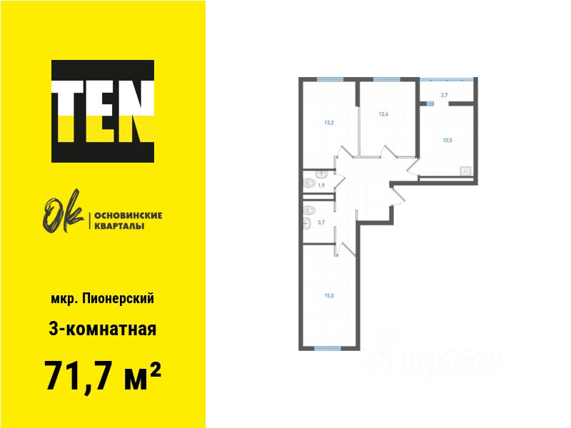 продам 3-к, Учителей, 33/310 583 000 ₽