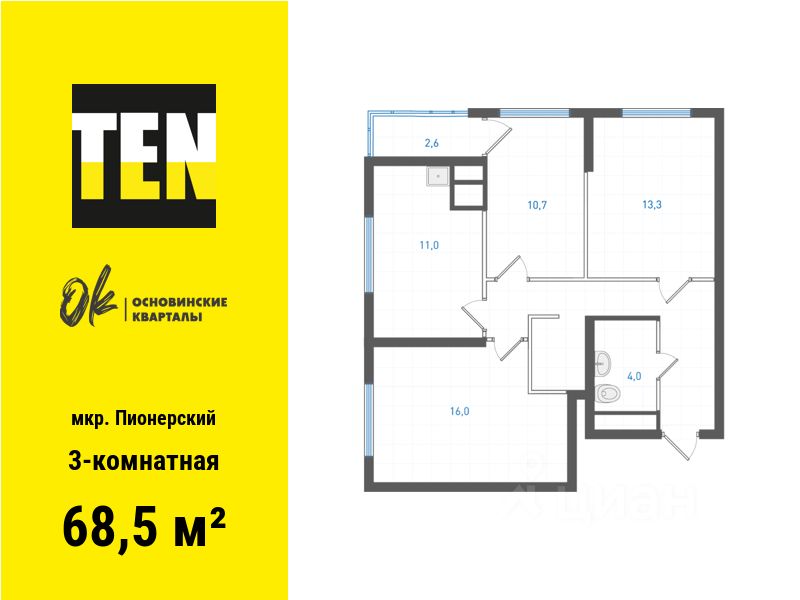 Квартира в Пионерском микрорайоне от застройщика!