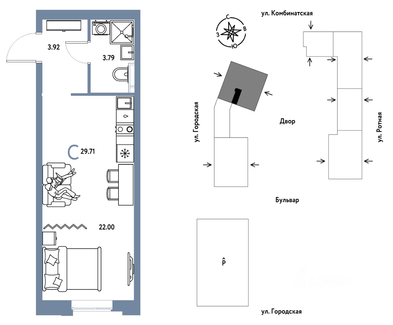 1комнатная квартира площадью 29,71кв. м. на 14 этаже жилого комплекса ''Уральский сад''.