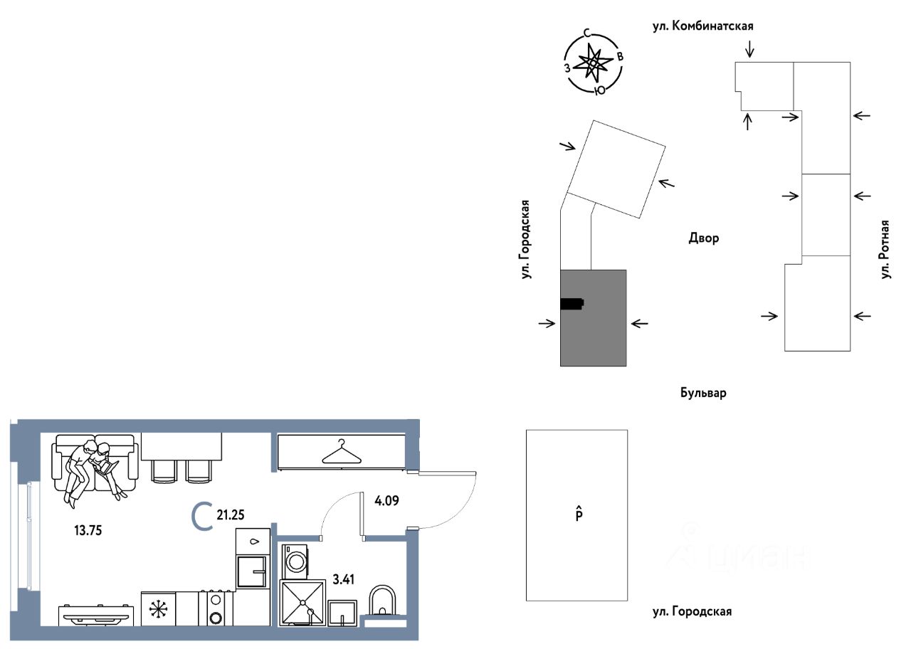 1комнатная квартира площадью 21,25кв. м. на 7 этаже жилого комплекса ''Уральский сад''.