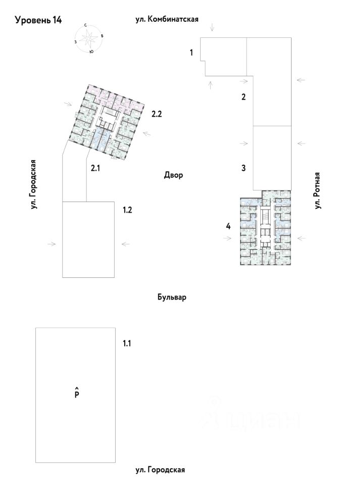Территория проекта будет условно разделена на 3 зоны: внешнее окружение, общественный бульвар и закрытые дворы.