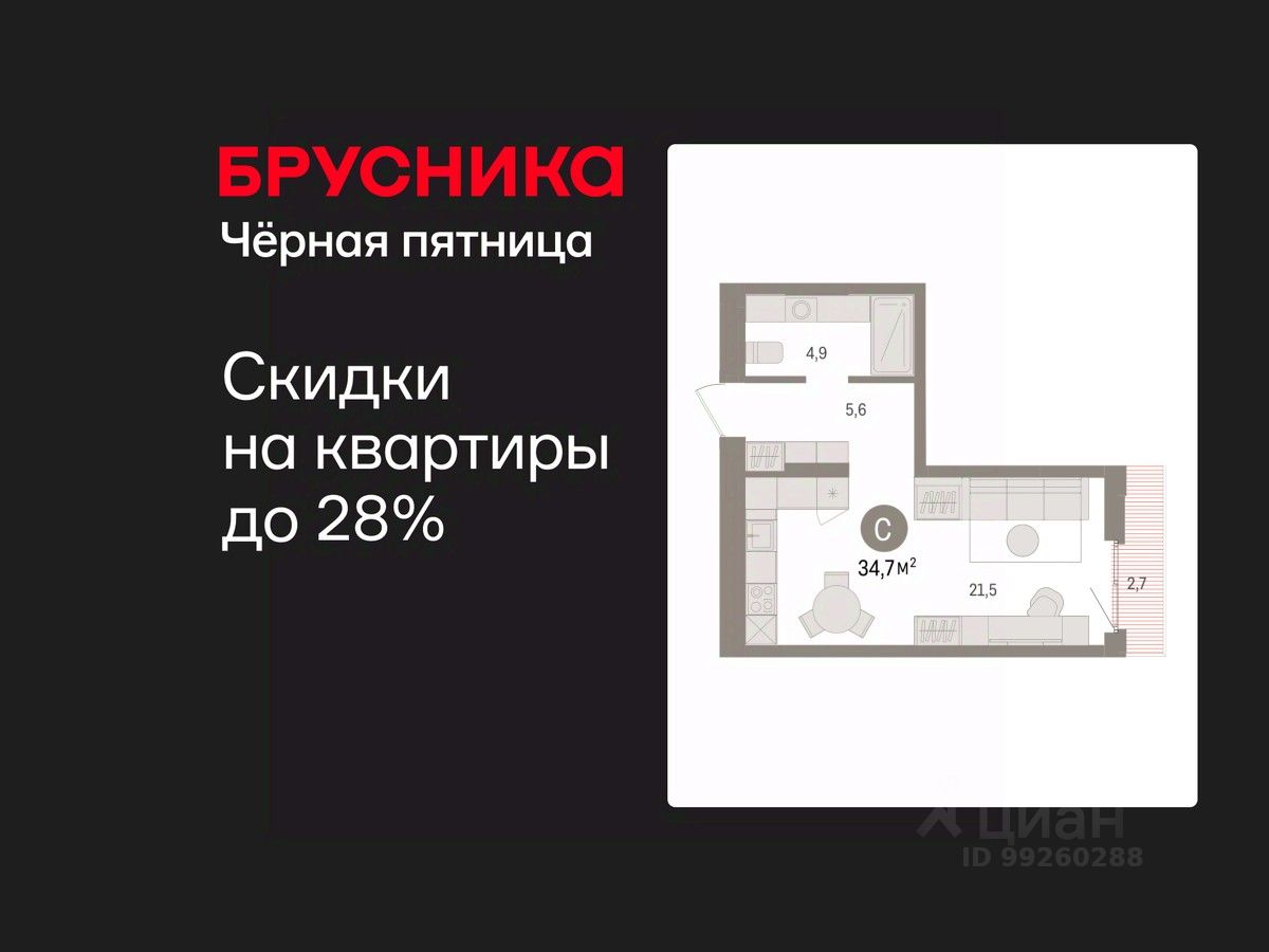 Продается 1-комн. студия с предчистовой отделкой в ЖК ''Квартал Траектория'' на 11 этаже. Общая площадь: 34.7 кв.м., площадь гостиной 21.5 кв.м., из которых 5 кв.м. выделено под кухонную зону. Все окна выходят на одну сторону. В квартире один балкон, один совмещенный санузел. Высота потолков 2.82 м.