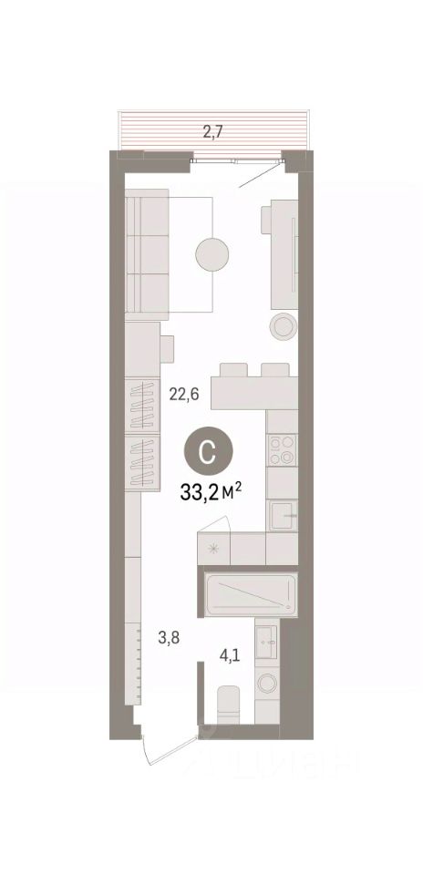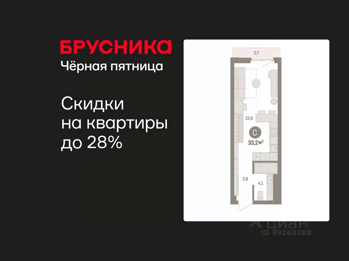 Студия в квартале ''Траектория''. Особенности планировки: предчистовая отделка, балкон. квартиры в нашей базе: МНВ01-Ж1.10.10.