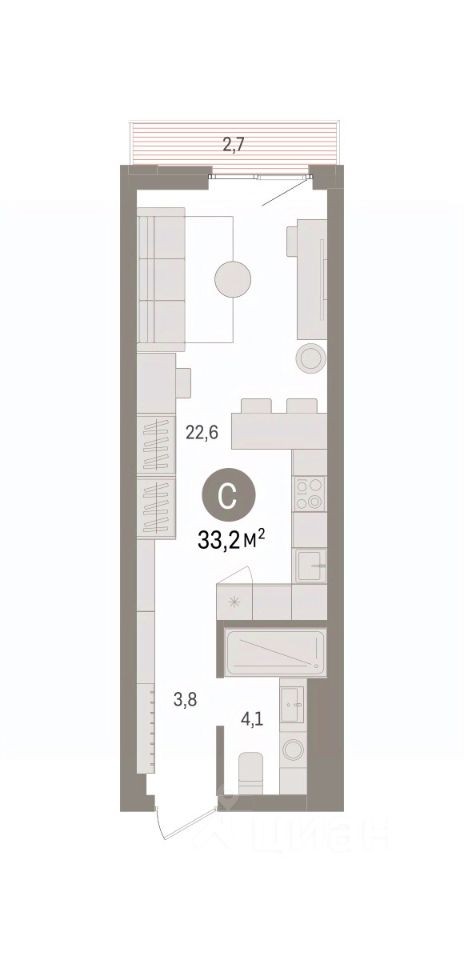 Студия в квартале ''Траектория''. Особенности планировки: предчистовая отделка, балкон. квартиры в нашей базе: МНВ01-Ж1.8.8.