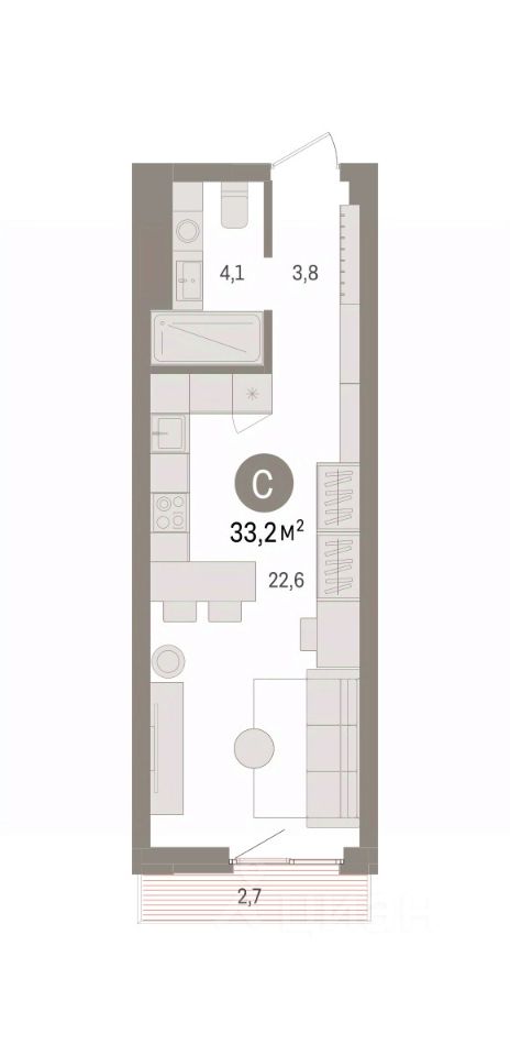 Студия в квартале ''Траектория''. Особенности планировки: предчистовая отделка, балкон. квартиры в нашей базе: МНВ01-Ж1.10.4.