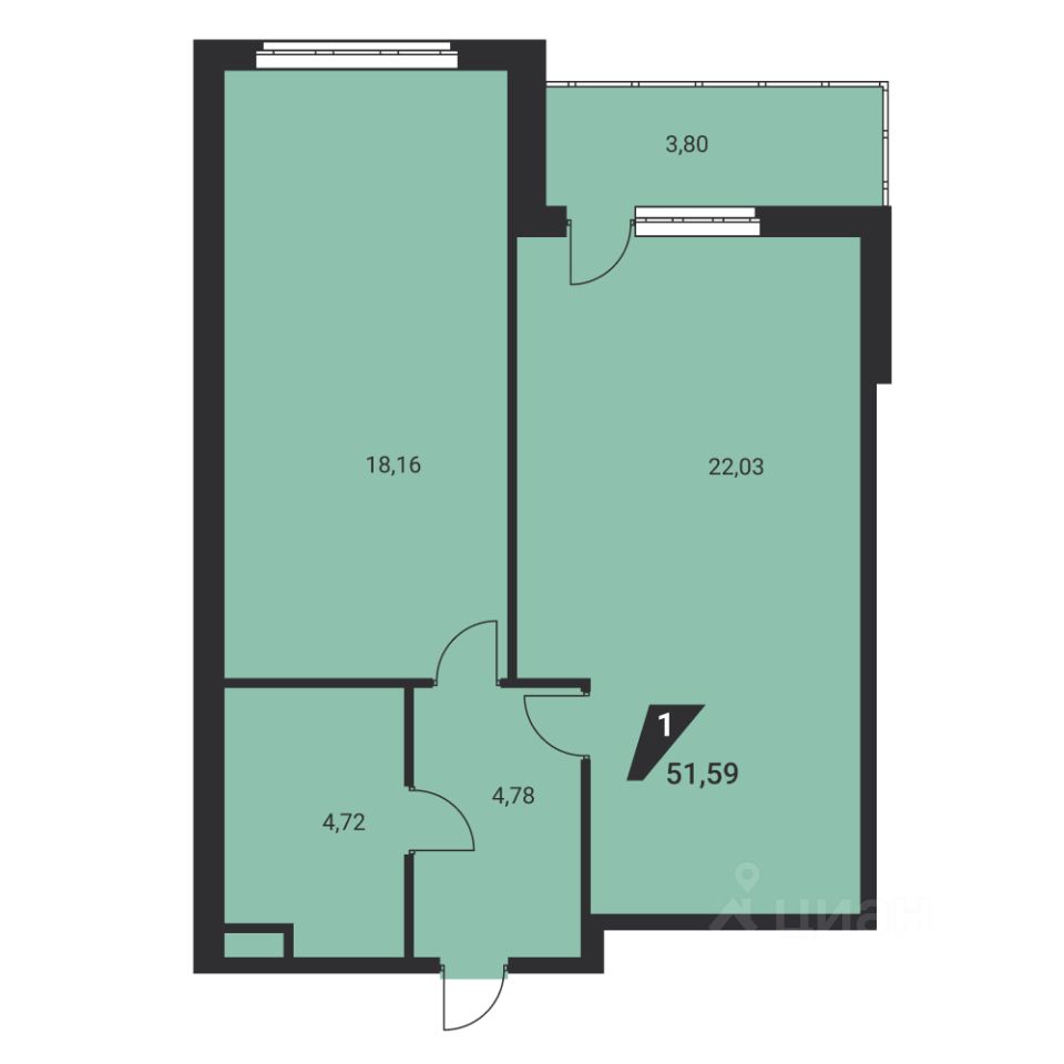 Общая площадь52,1 м2