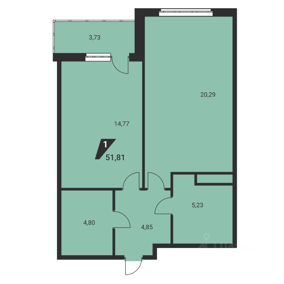 Общая площадь51,6 м2