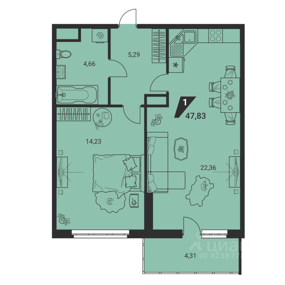 Общая площадь47,8 м2