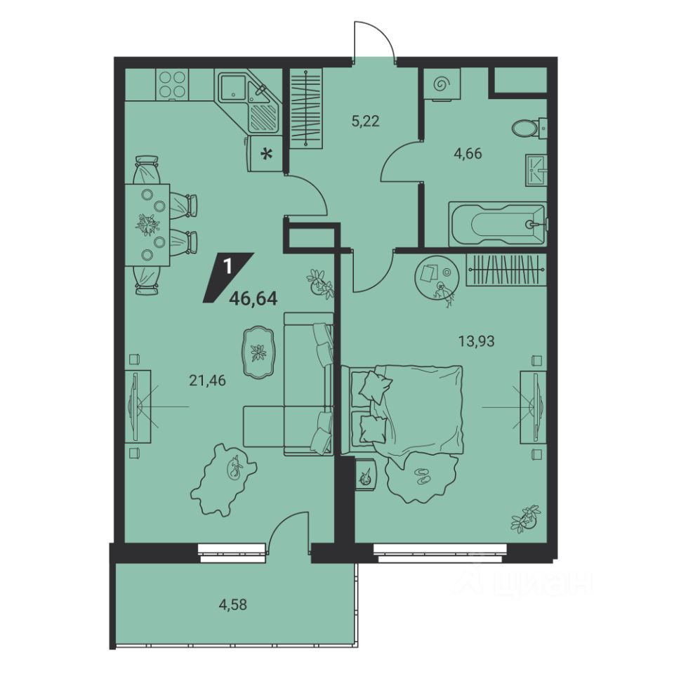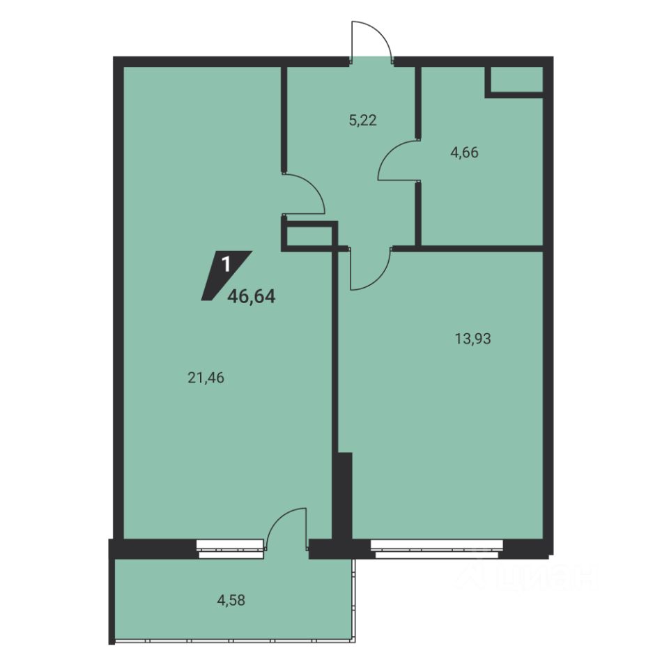 Общая площадь46,6 м2