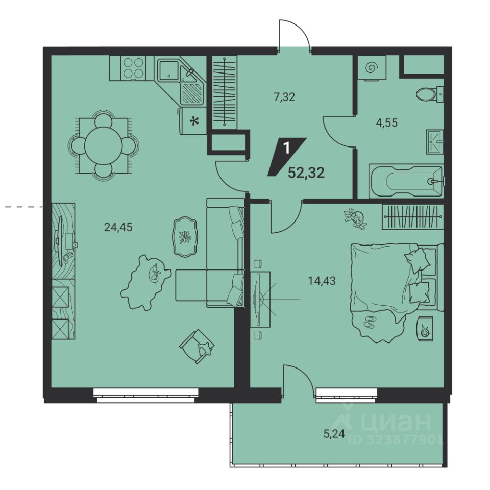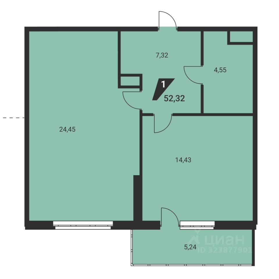 Общая площадь51,7 м2