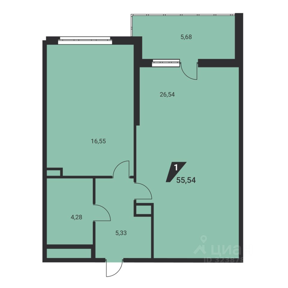 Общая площадь55,9 м2