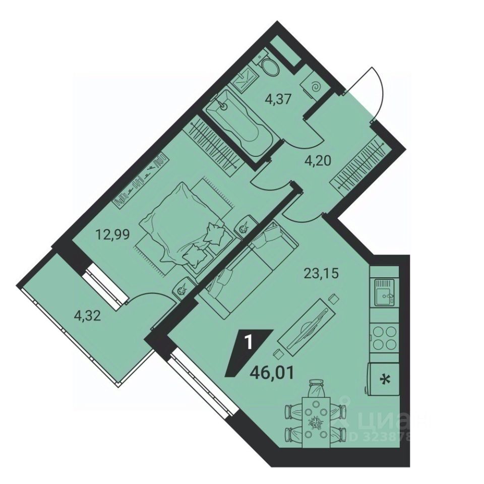 Общая площадь45,8 м2