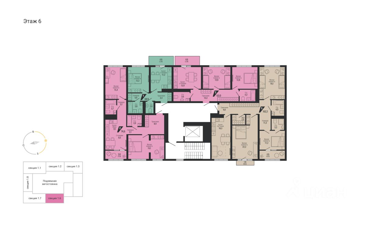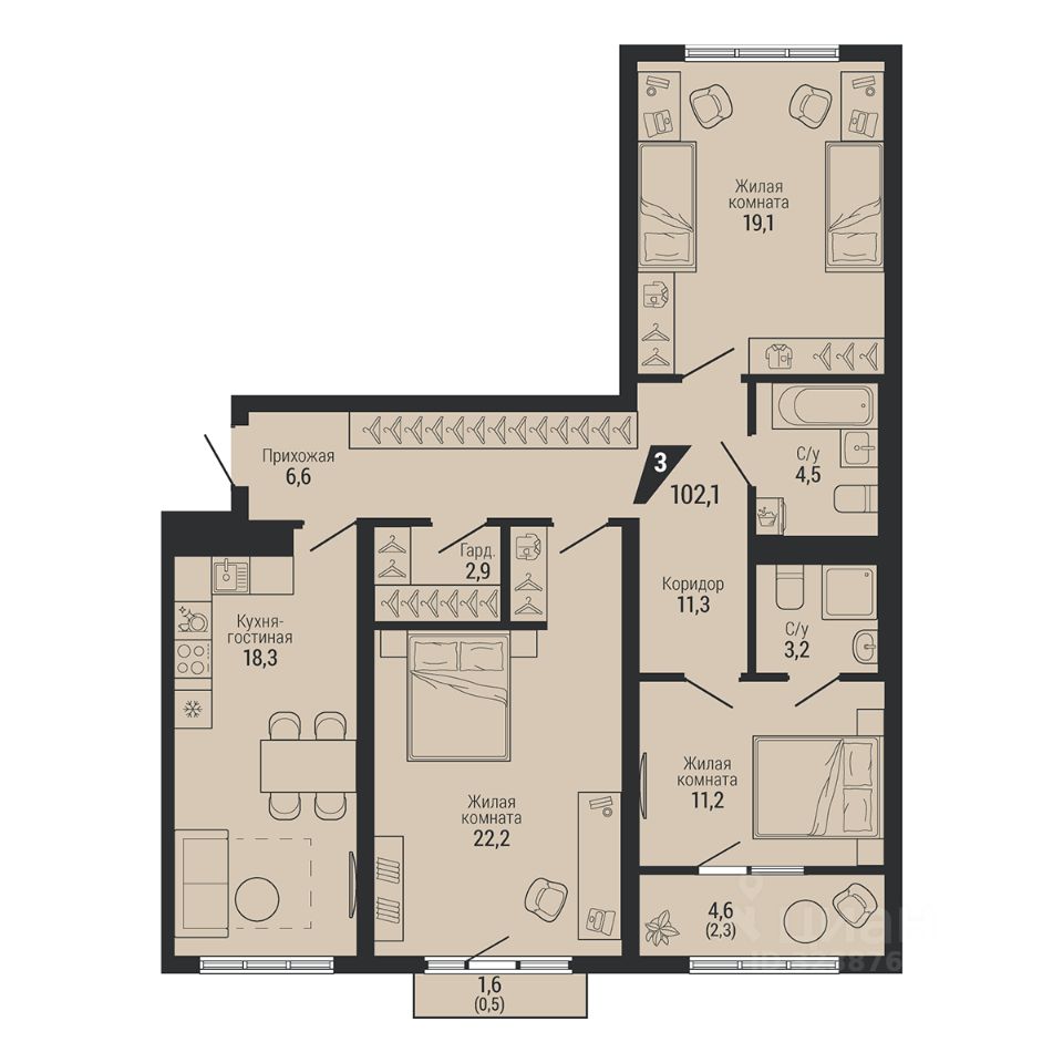Общая площадь102,1 м2