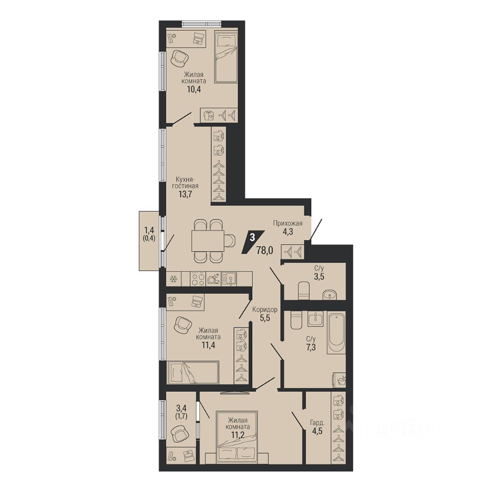 продам 3-к, Мусоргского, гп 111 162 475 ₽
