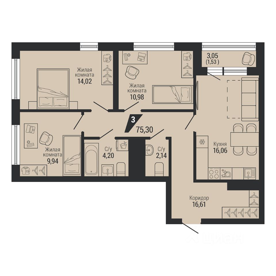продам 3-к, Ученический переулок, гп 113 859 800 ₽
