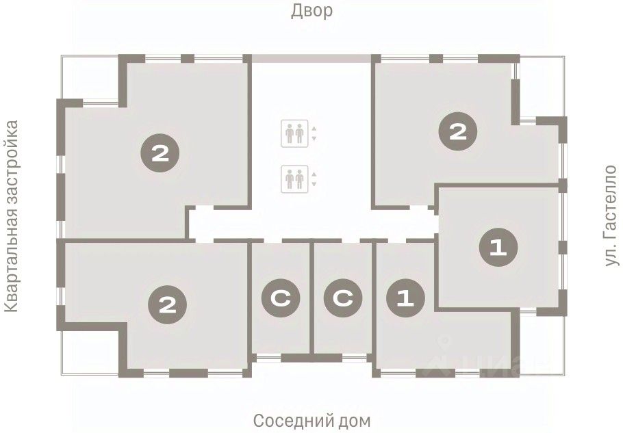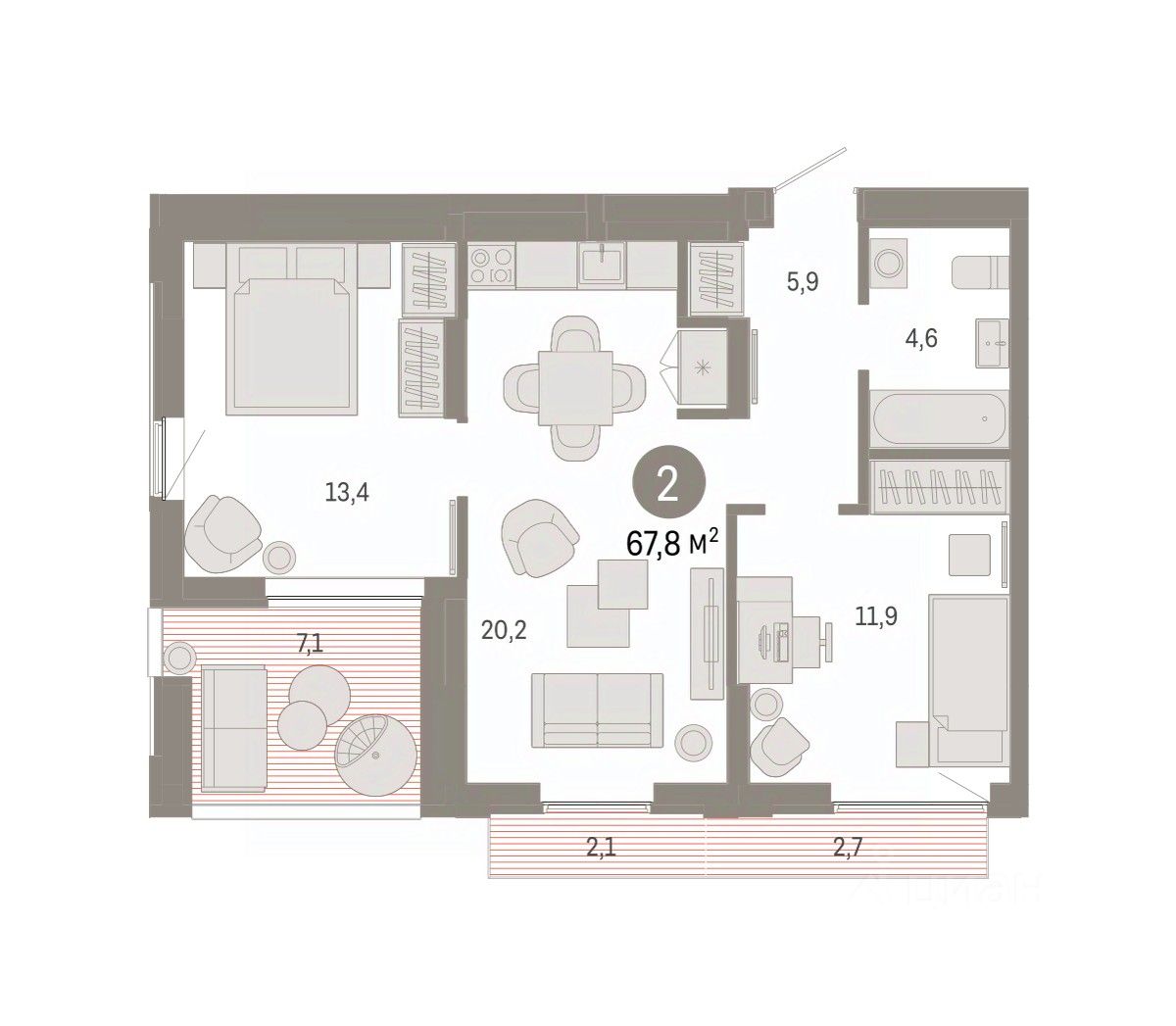 Квартира с кухней-гостиной и двумя спальнями в районе Шишимская горка. Особенности планировки: разнесённые спальни, предчистовая отделка, терраса на крыше. квартиры в нашей базе: ШГР16-Ж5.13.6.