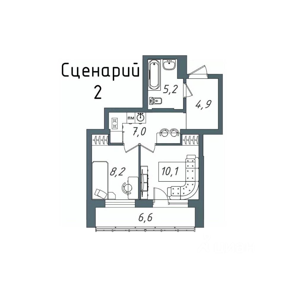 Общая площадь42,6 м2