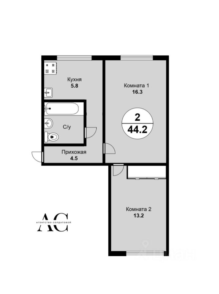 В продаже отличная двухкомнатная квартира в Юго-западном районе.