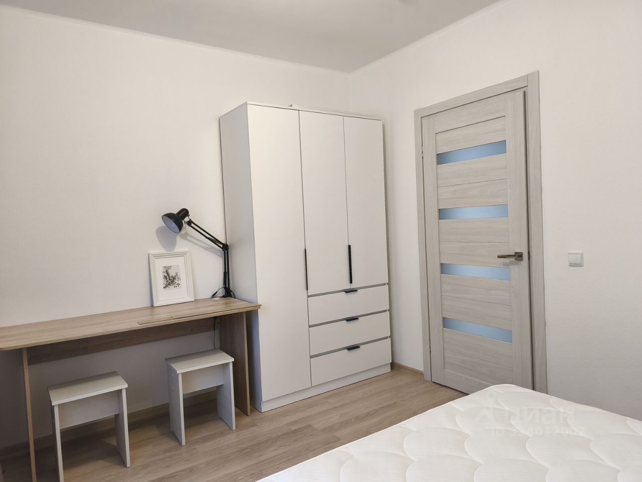 Евротрешка. То есть две спальни (по 12 кв.м, изолированные) и кухня-гостиная (20 кв.м). Два полноценных санузла с ванными. Есть все для комфортной жизни. Кондиционер. Стиральная машинка с функцией сушки. Телевизор с опцией смарт. Красивый кухонный гарнитур с врезанной варочной панелью, посудомоечная машина, двухкамерный высокий холодильник, настольная духовка, микроволновка, кофеварка, обеденный стол, диван. В спальнях - кровати по 160 см с толстыми ортопедическими матрасами, шкафы для одежды, письменные столы. В коридоре - большая гардеробная система.