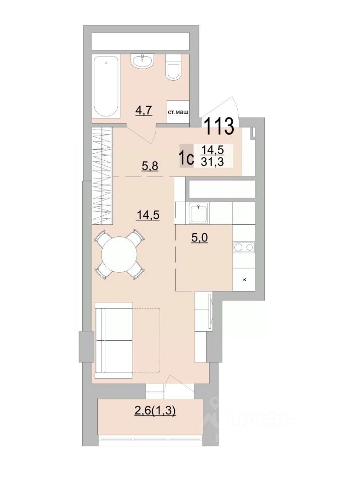Общая площадь31,3 м2