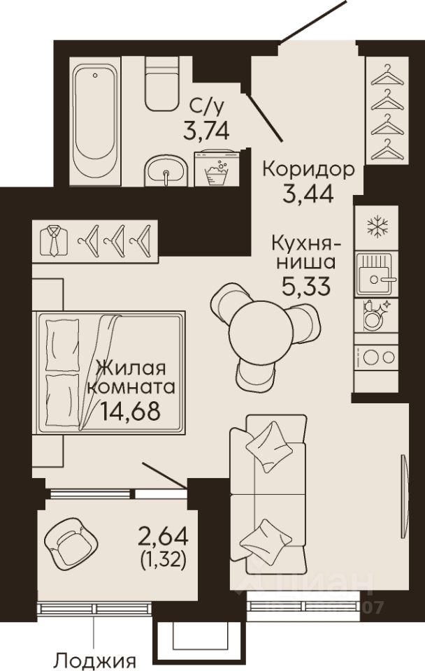 Жилая площадь14,6 м2