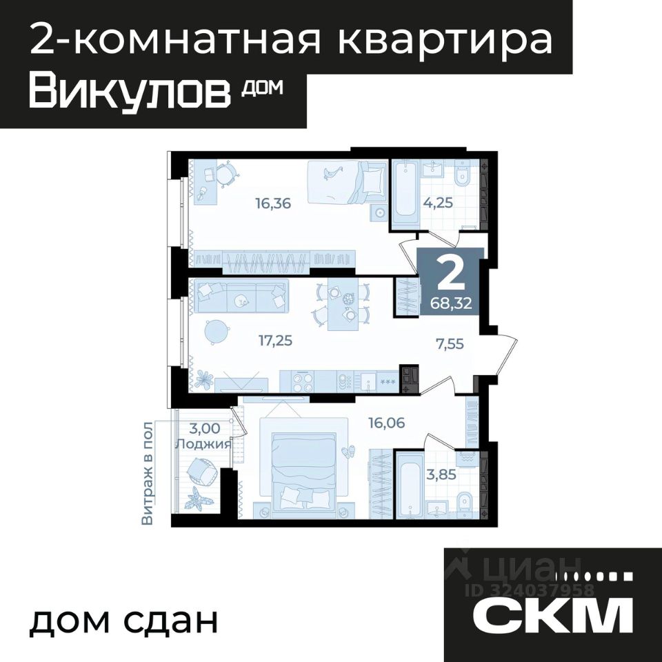 Общая площадь68,32 м2