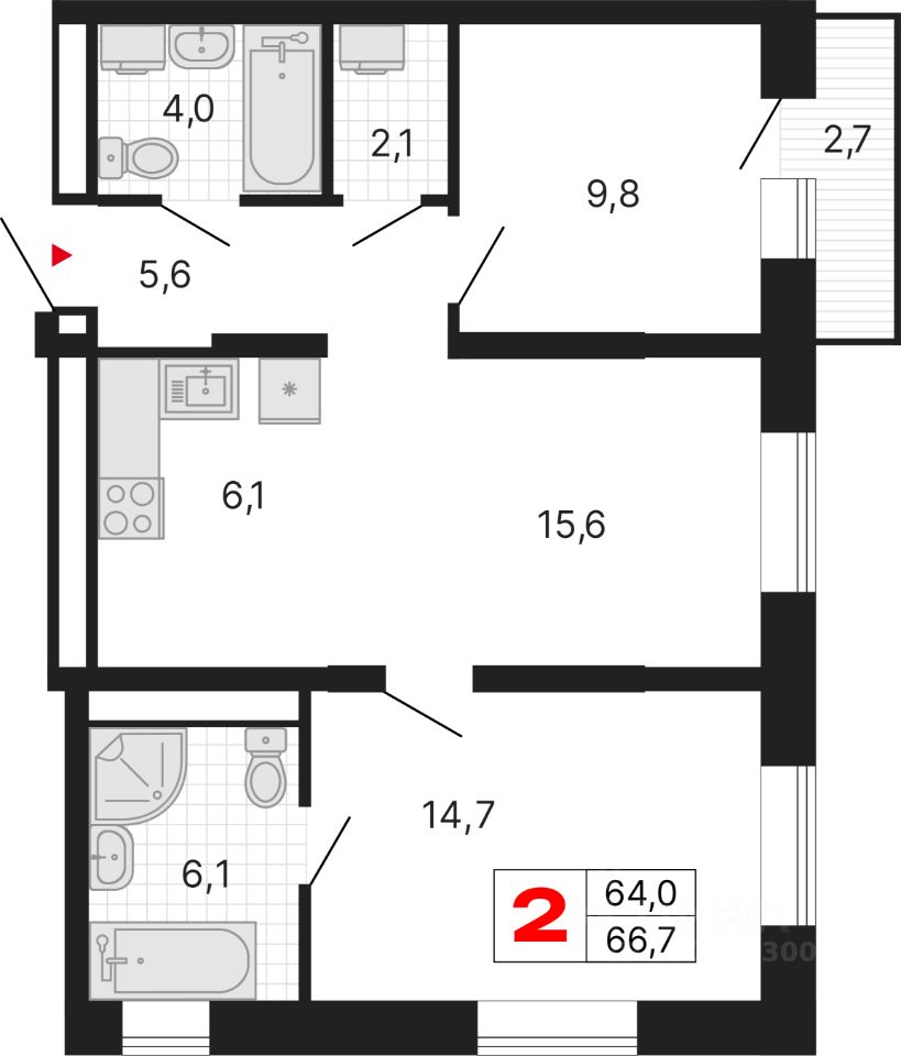 Продаётся 2-комнатная квартира в строящемся доме (Дом 4), срок сдачи: III-кв. 2026, общей площадью 66.7 кв.м., на 6 этаже. Жилой район — проект комплексного развития территории. Здесь будут построены новые дома, подземные и открытые парковки, коммерческая инфраструктура на первых этажах, средняя общеобразовательная школа и три детских сада. Особенность проекта — квартальная застройка с закрытыми дворами без машин, разнообразие архитектурных решений и высотности зданий от 7 до 25 этажей. В центре будут построены низкоэтажные одноподъездные дома по типу ''урбан-вилла''. Через весь микрорайон будет проходить пешеходный бульвар, который станет главной ''зеленой'' улицей для жителей.