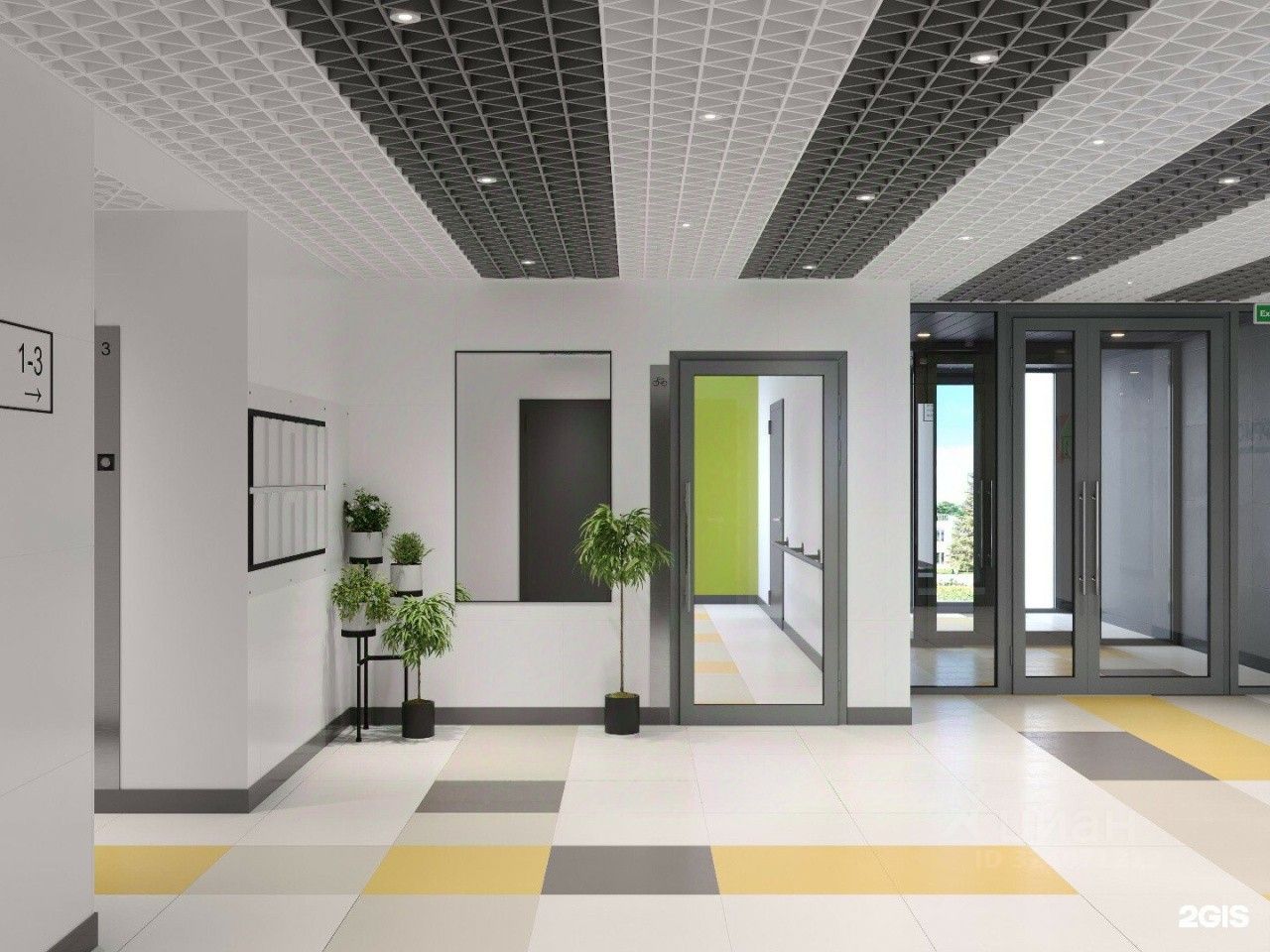 Светлые дизайнерские холлы, прочные стеклянные входные группы. На первом этаже - места для хранения колясок и велосипедов, помещение для мытья лап питомцам, гостевой туалет и кулер с питьевой водой.
